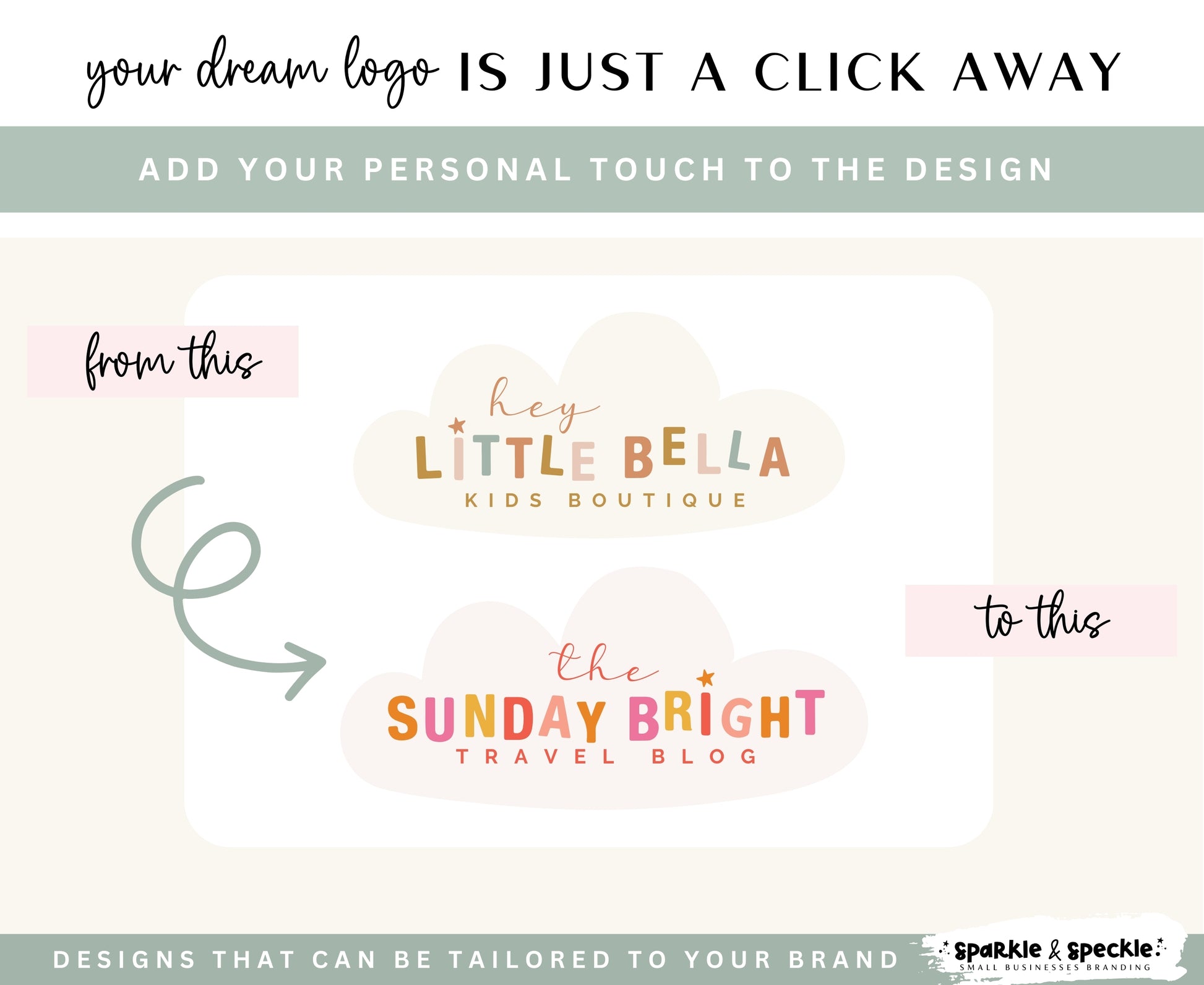 You have the freedom to personalize every aspect of this design to align it perfectly with your brand's aesthetic. Additionally, the custom-made font by Sparkle & Speckle adds a unique touch of originality and charm to your branding.