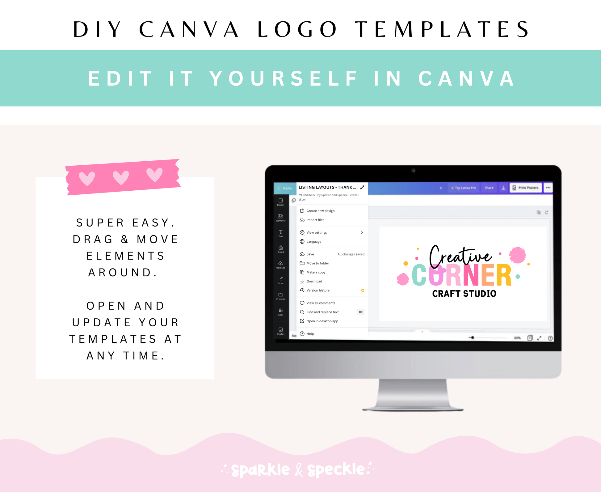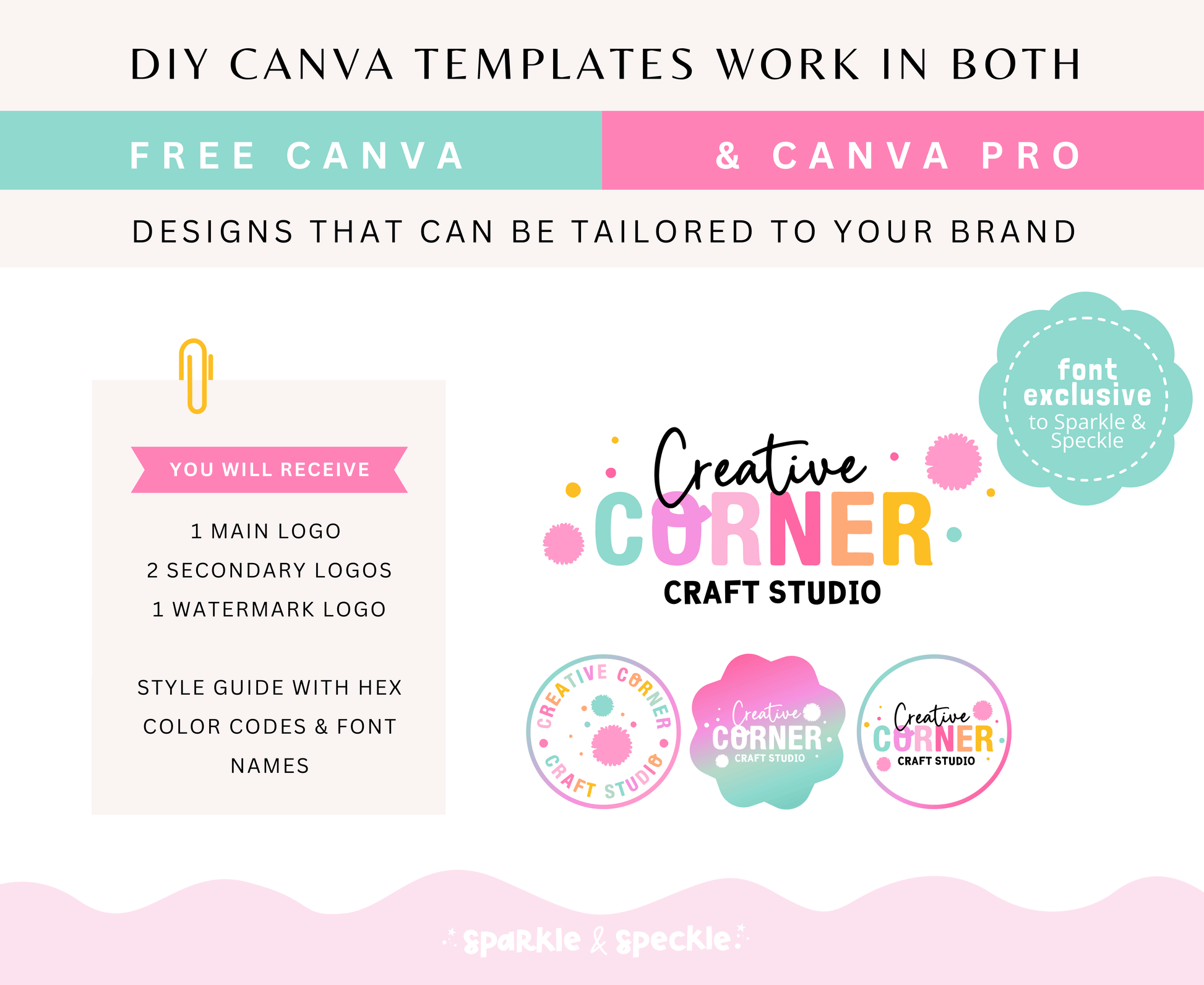 You have the freedom to personalize every aspect of this design to align it perfectly with your brand's aesthetic. Match your brand colors, fonts, and style—no design skills needed.. Features a unique Sparkle & Speckle font and playful pastel pom-pom style to match your colorful brand vibe.