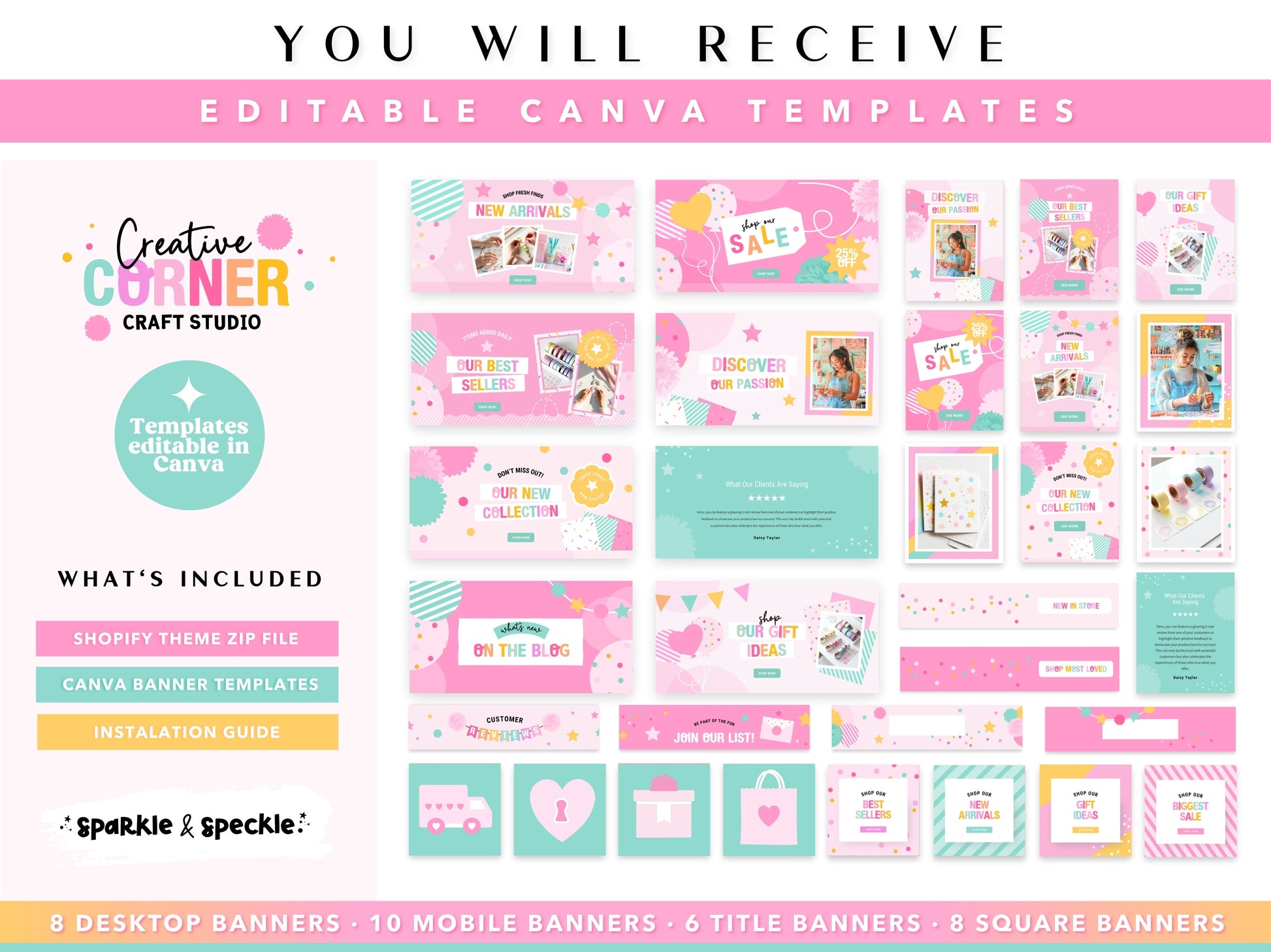 Create a bright, colorful, and professional online Shopify store quickly with the Party Shopify Theme — designed for party supplies sellers, balloon shops, decorations stores, craft businesses, and party planners. No coding or design experience needed. With easy-to-follow instructions and editable Canva banners, you can launch your ecommerce store fast and start selling with confidence.