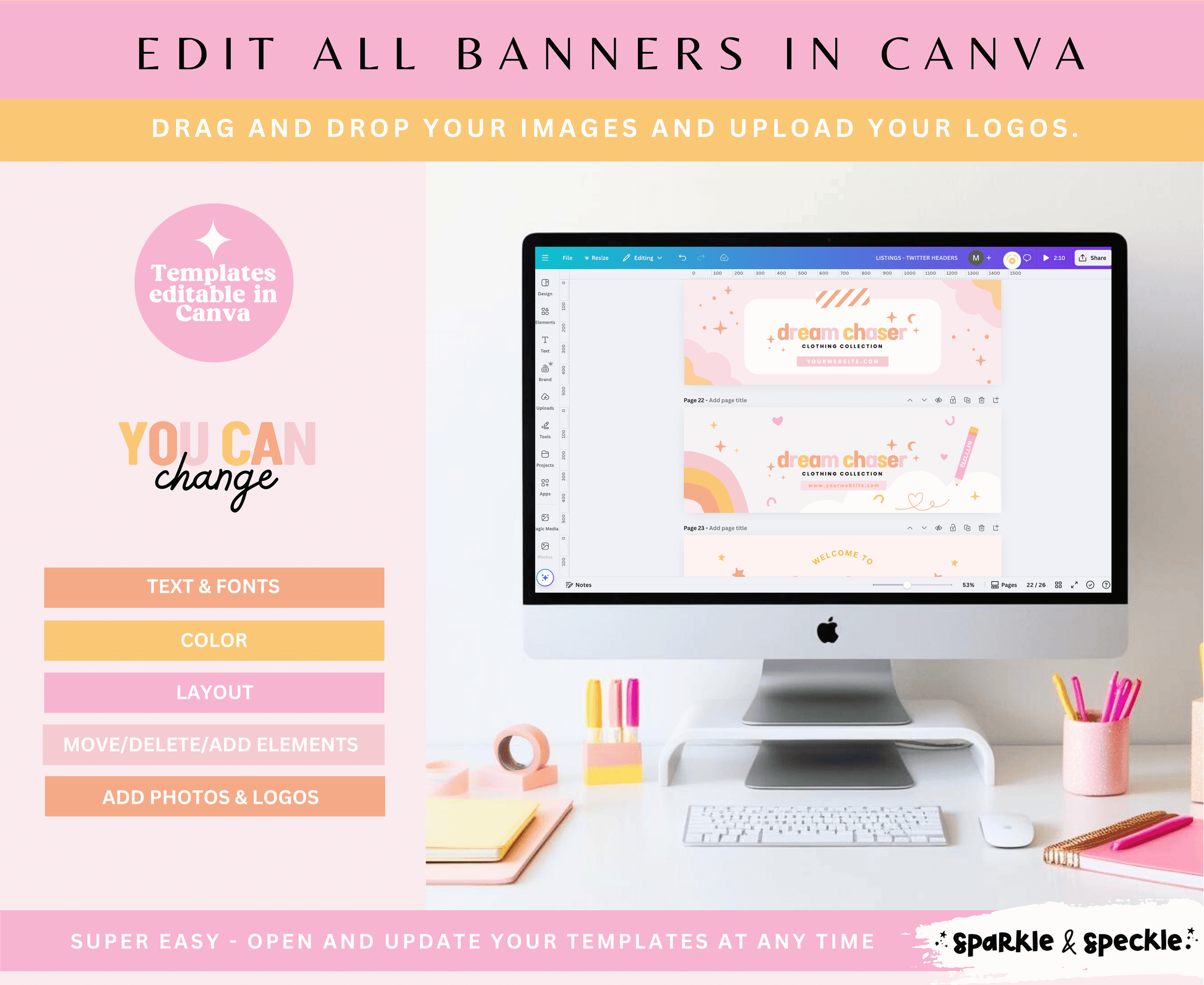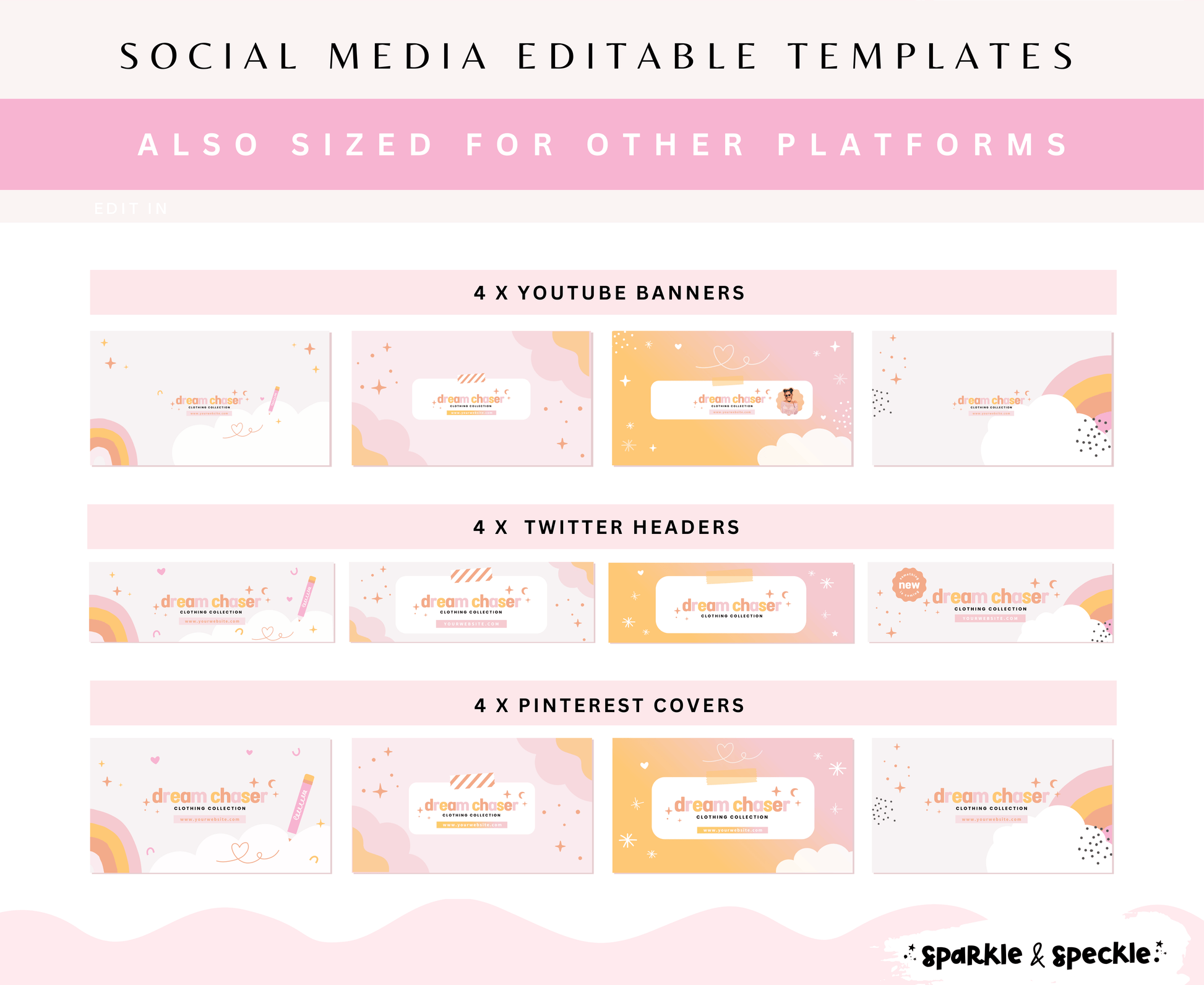 These vibrant Facebook covers, Twitter headers, Pinterest covers and Youtube banners are designed to grab attention and boost engagement. Easily tailor each banner to fit your brand’s style and message, ensuring a cohesive and professional look across all your social media channels.