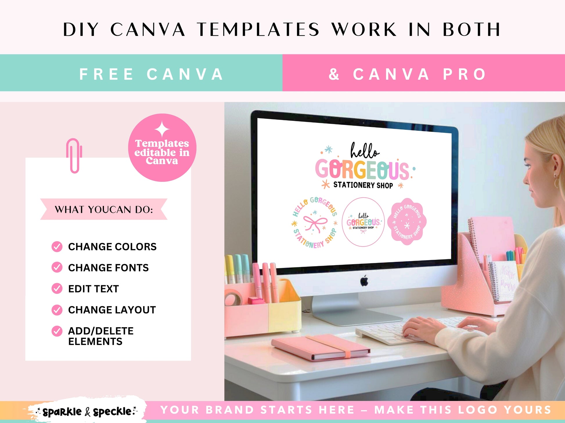 Bring a burst of color and creativity to your brand with this editable Canva bow logo template—perfect for crafters, stationery sellers, handmade shops, and creative small businesses who want a joyful, professional logo without the design overwhelm.