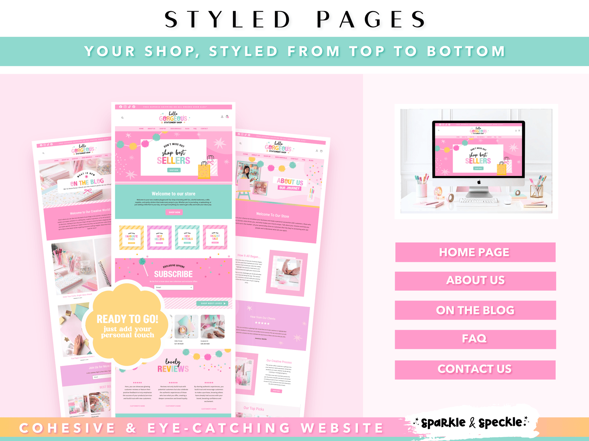 Home Page, About, Shop, FAQs, Contact, Blog
