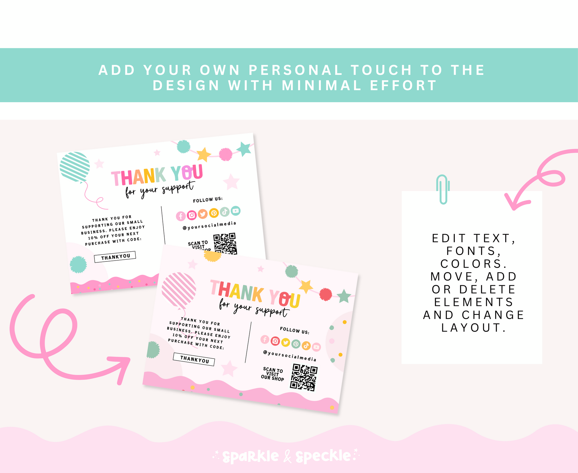 This editable Canva template lets you effortlessly express gratitude, build customer loyalty, and elevate your brand in minutes. Perfect for small business owners, craft makers, handmade boutiques, Etsy sellers, and creators who want every package to leave a lasting impression.