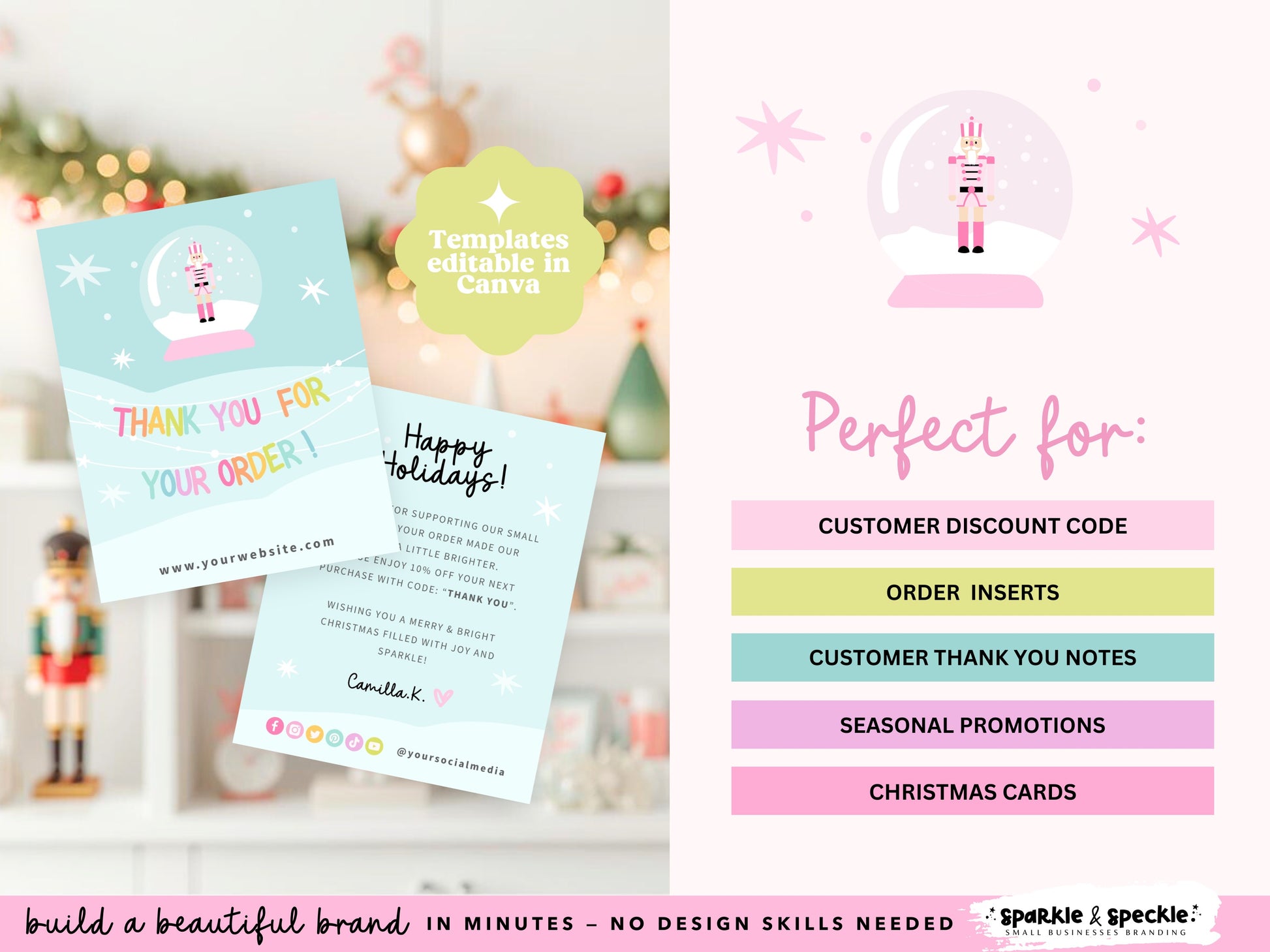 This festive Christmas thank-you card is ideal for business order inserts, holiday market packaging, or even as a seasonal flyer or event sign. Use it to include a discount code, share a warm thank-you message, or make your gifts and holiday mail feel extra special. It’s also perfect for Christmas parties, pop-up events, teachers, coworkers, or clients—a fun way to spread joy and appreciation during the most magical time of the year.