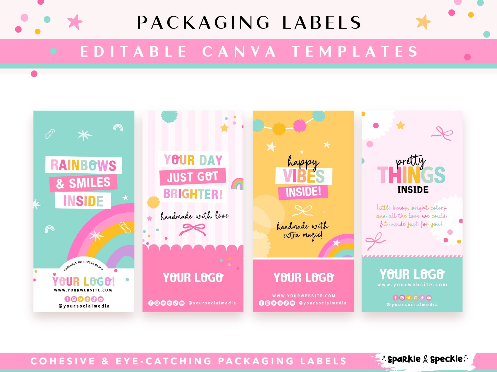 Part of a the playful hello Gorgeous collection, these packaging labels feature joyful wording and rainbow-inspired energy — perfect for small creative businesses that want their packaging to feel fun, thoughtful, and memorable.