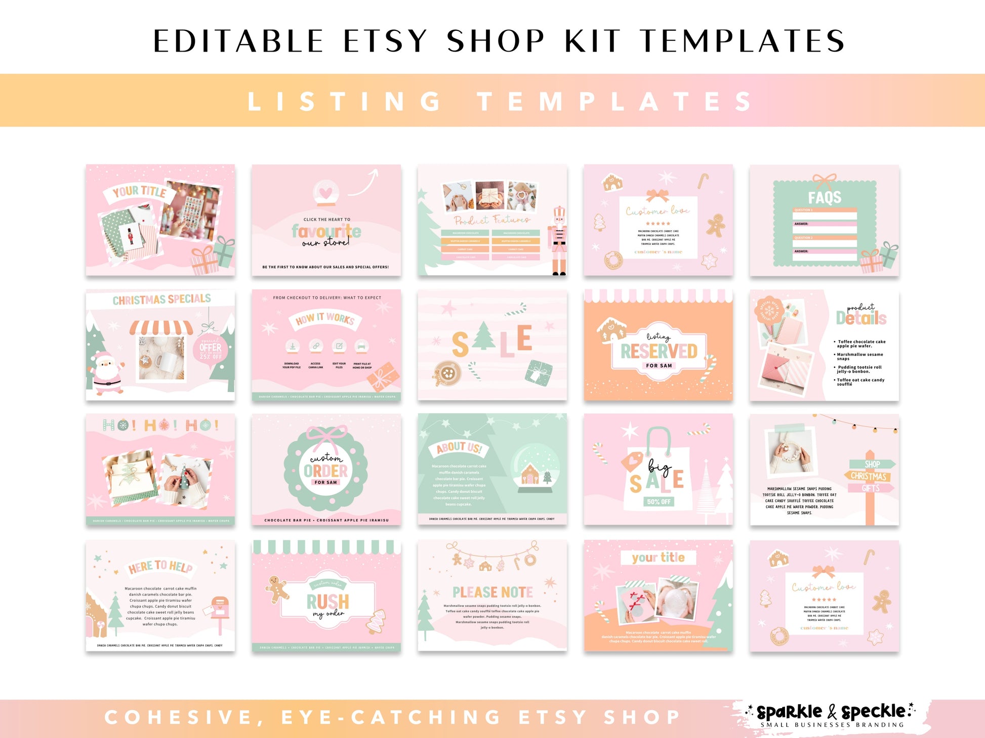 20 editable Etsy shop listing templates.