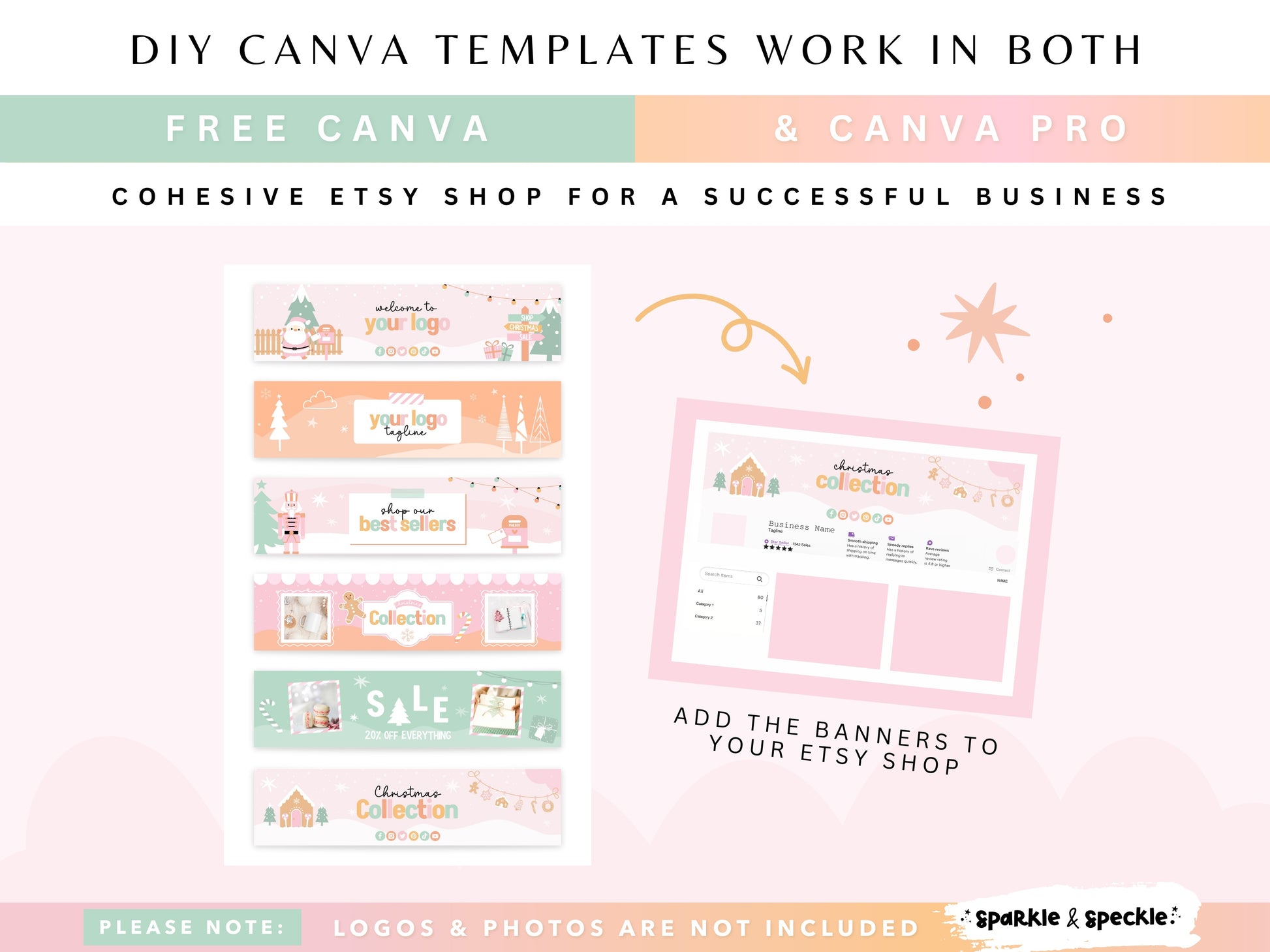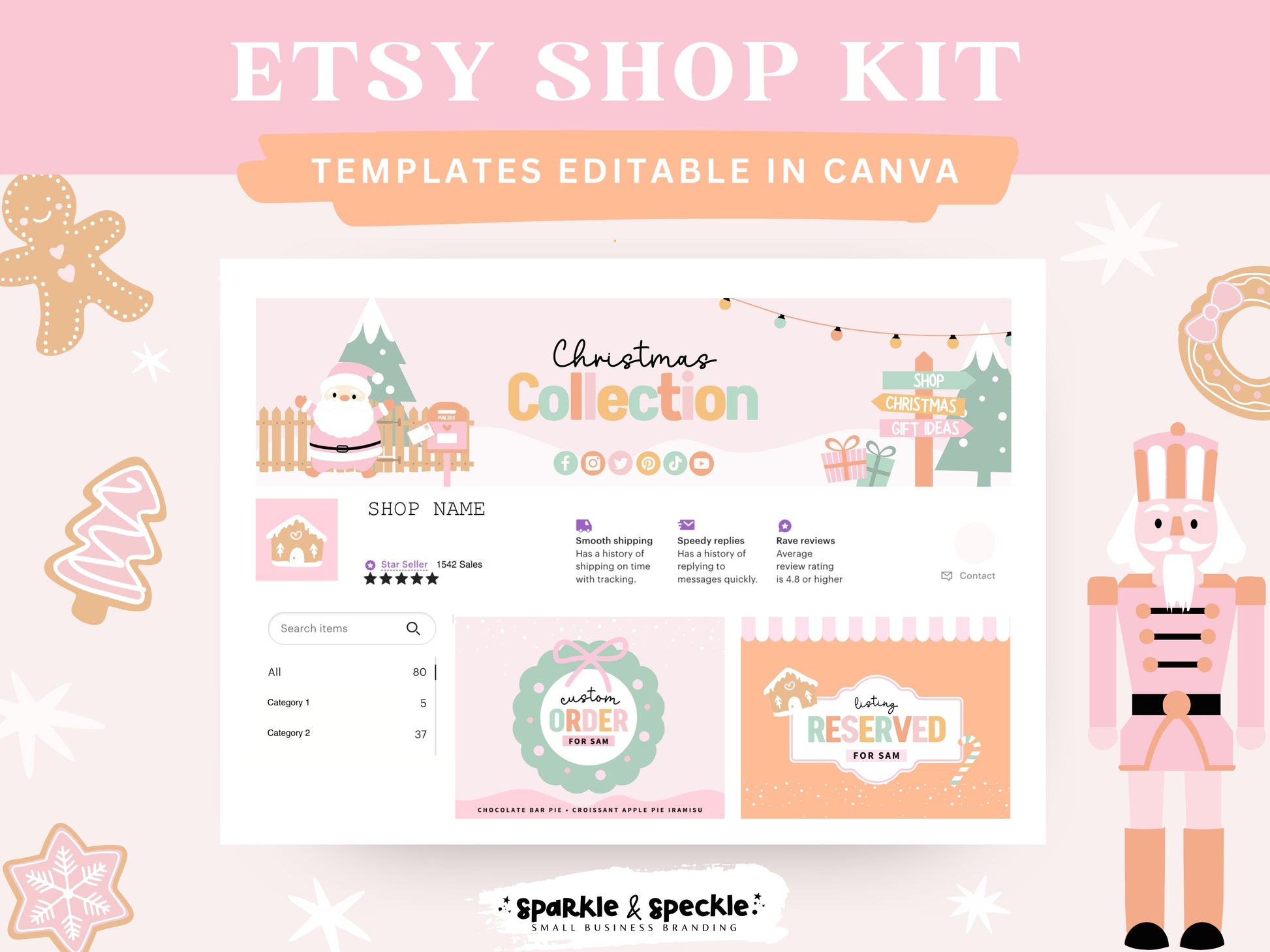 All templates are fully editable in Canva, so you can easily personalize your shop banners, listing mockups to match your brand’s colors and style. Whether you’re launching your first holiday collection or refreshing your seasonal look, this kit helps your shop feel cohesive, professional, and totally festive.