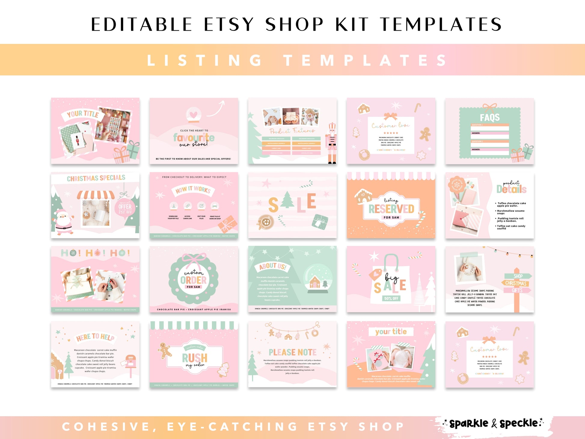 20 Editable Etsy shop listing templates.